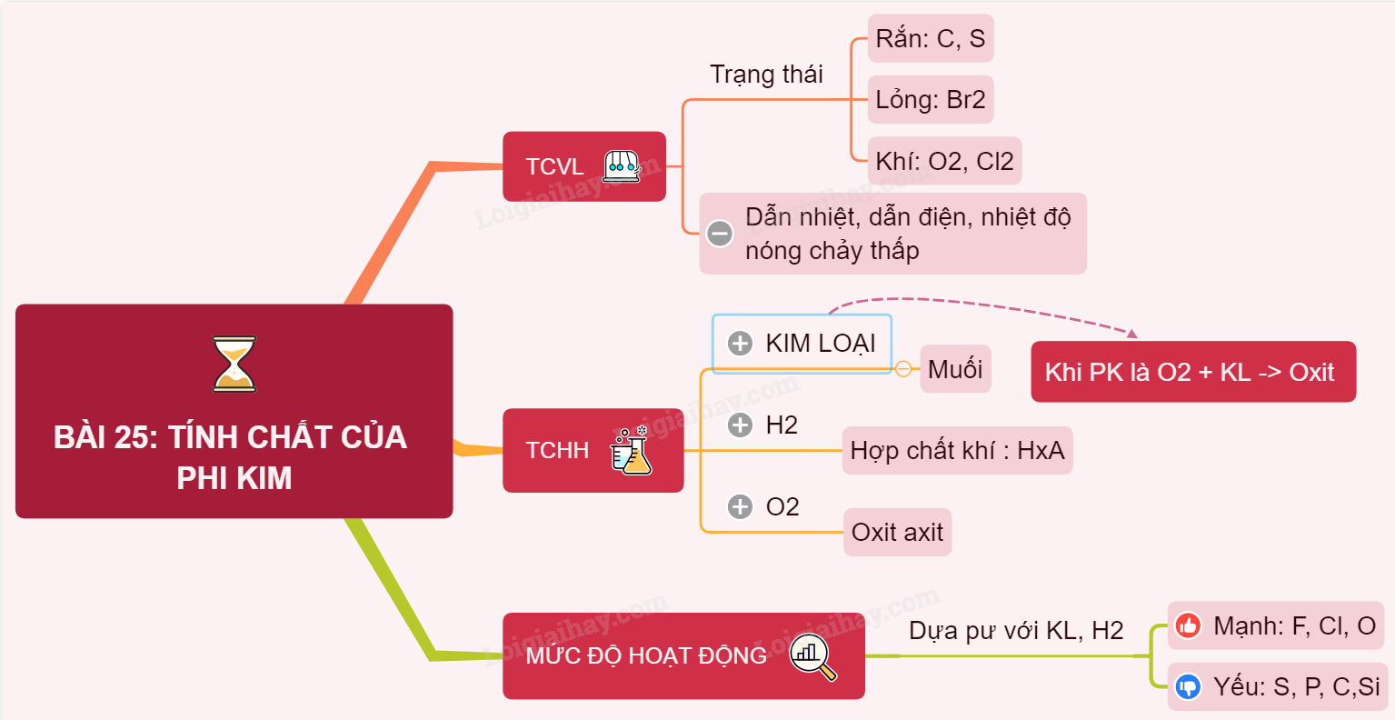 Sơ đồ tư duy: Tính chất của phi kim