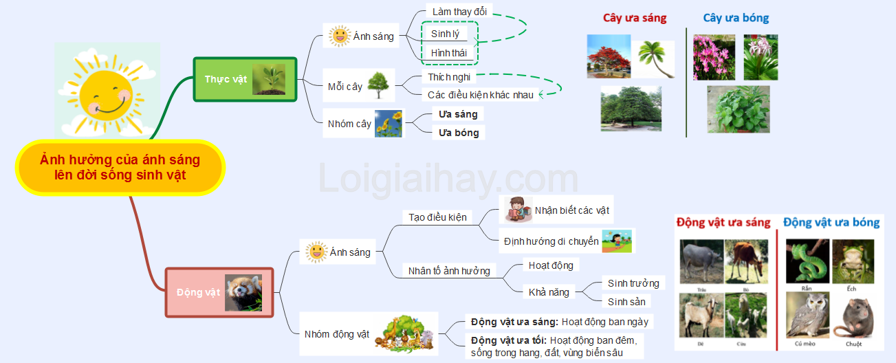 Sơ đồ tư duy Ảnh hưởng của ánh sáng lên đời sống sinh vật: