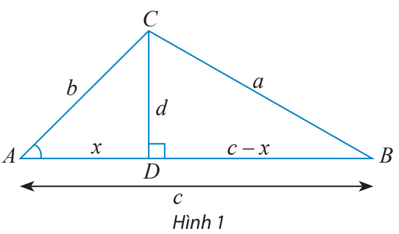 a) Cho tam giác ABC không phải là tam giác vuông với góc A nhọn và ˆC≥ˆB. Vẽ đường cao CD và đặt tên các độ dài như trong Hình 1.