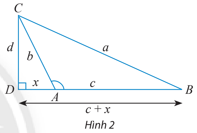 Xét tam giác vuông BCD, ta có: a2=d2+(c−x)2=d2+x2+c2−2xc (1)