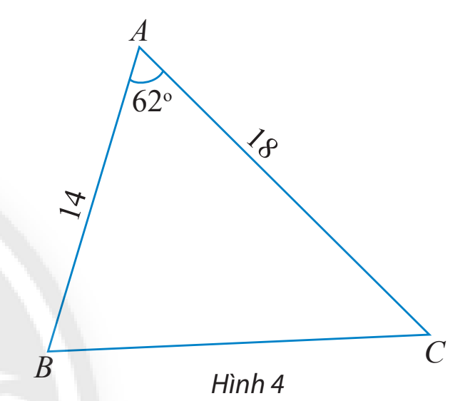 Tính các cạnh và các góc chưa biết của tam giác ABC trong hình 4.