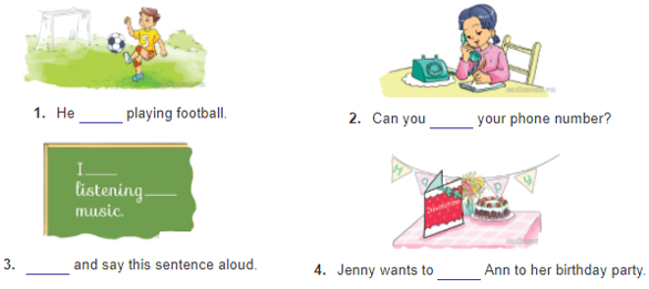 Bài 18. Complete the sentences with the verbs: enjoys, repeat, complete and invite. Say the sentences aloud.