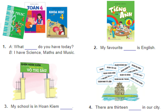 (Mình có môn Khoa học, Toán và Âm nhạc.)