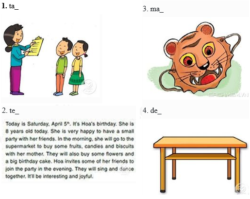 Bài 4. Complete and say the words aloud. (Hoàn thành và đọc to các từ.)