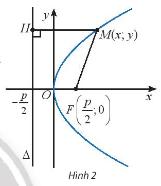Cho điểm trên parabol (P) (Hình 2). Tính khoảng cách từ điểm M đến tiêu điểm của (P).