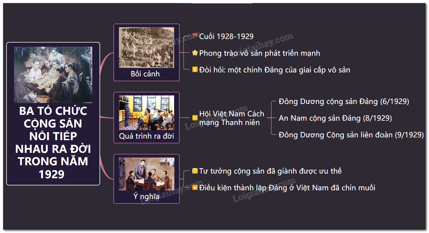 Tóm tắt những nét chính: Ba tổ chức cộng sản nối tiếp nhau ra đời trong năm 1929: bối cảnh, quá trình ra đời và ý nghĩa. |