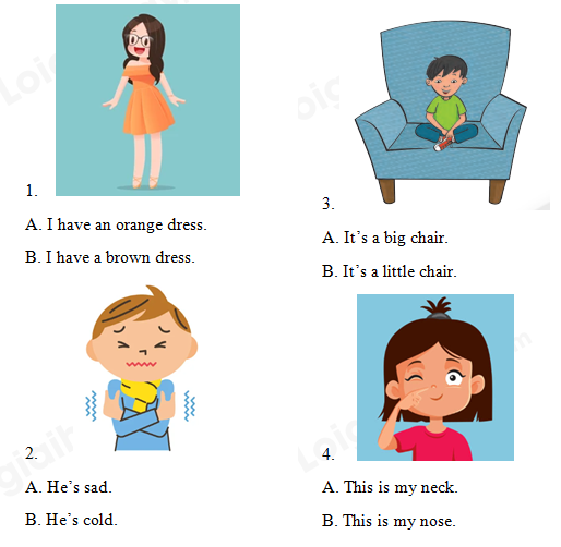 II. Look and choose the correct sentence.