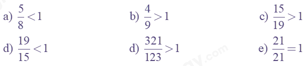 b) Viết mỗi số tự nhiên sau dưới dạng một phân số có mẫu số bằng 1:
