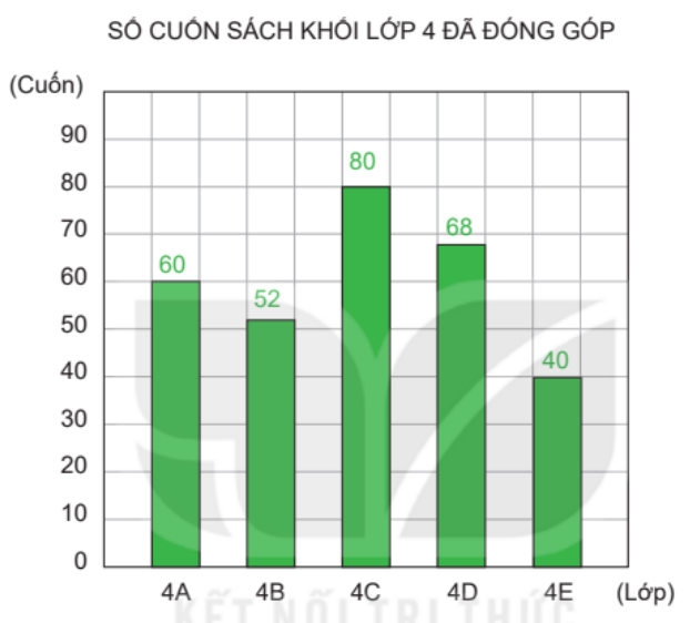 Biểu đồ dưới đây cho biết số cuốn sách khối lớp 4 đã đóng góp cho thư viện của nhà trường.