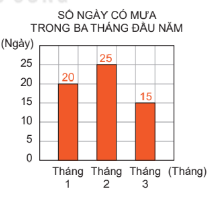 Biểu đồ bên nói về số ngày có mưa trong ba tháng đầu năm ở một tỉnh.