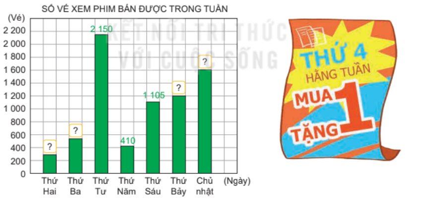 Cho dãy số liệu về số vé xem phim mà rạp chiếu phim Hòa Bình bán được từ thứ Hai đến Chủ nhật theo thứ tự là: 285 vé, 540 vé, 2 150 vé, 410 vé, 1 105 vé, 1 200 vé, 1 610 vé.