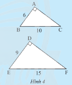 Cho hai tam giác vuông ABC và DEF có các kích thước như Hình 4.
