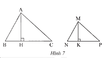 Trong Hình 7, biết ΔMNP∽ΔABC với tỉ số đồng dạng k=MNAB, hai đường cao tương ứng là MK và AH.