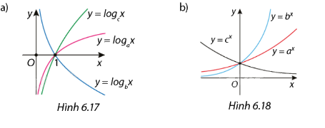 Cho a, b, c là các số thực dương và khác 1. So sánh a, b, c và 1 trong mỗi trường hợp sau: