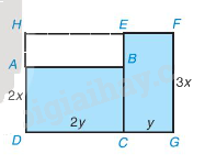 Một mảnh đất có dạng như phần tô màu xám trong hình bên cùng với các kích thước (tính bằng mét) được ghi trên đó. Hãy tìm đơn thức của mảnh đất đã cho bằng hai cách: