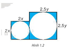 Từ một miếng bìa, người ta cắt ra hai hình tròn có bán kính x centimét và y centimét. Tìm biểu thức biểu thị diện tích phần còn lại của miếng bìa, nếu biết miếng bìa có hình dạng gồm hai hình vuông ghép lại và có kích thước (centimét) như hình bên. Biểu thức đó có phải là một đa thức không? Nếu phải thì đó là đa thức bậc mấy?
