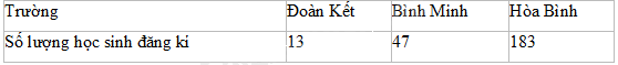 Số học sinh của ba trường Trung học cơ sở trên địa bàn đăng kí chạy việt dã do quận tổ chức được cho trong bảng sau:
