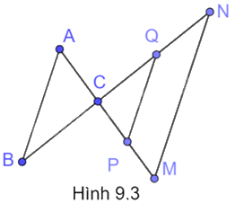 Trong Hình 9.3, cho PQ và MN cùng song song với AB. Hãy liệt kê ba cặp tam giác phân biệt đồng dạng với nhau.