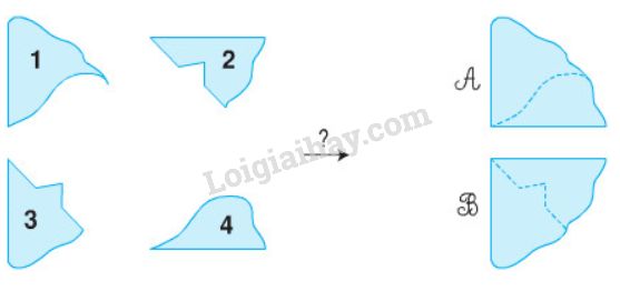 Hai miếng bìa nào có thể ghép với nhau được một góc vuông như hình A hoặc hình B.