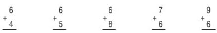 6 + 0 =               7 + 6 =                 8 + 6 =                  9 + 6 =
