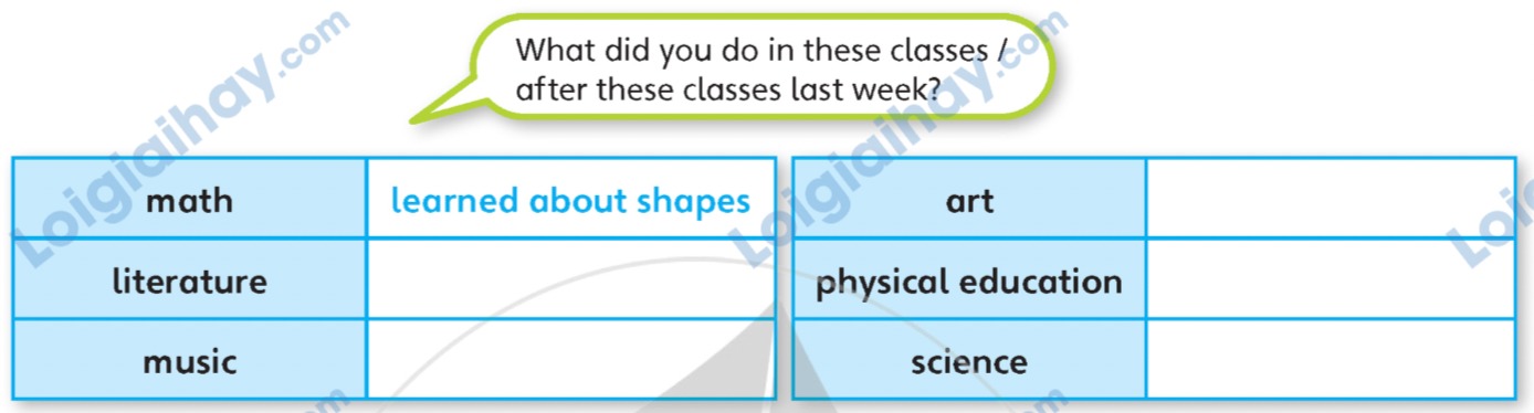 (Hãy kể về những gì bạn đã làm ở trường tuần trước.)