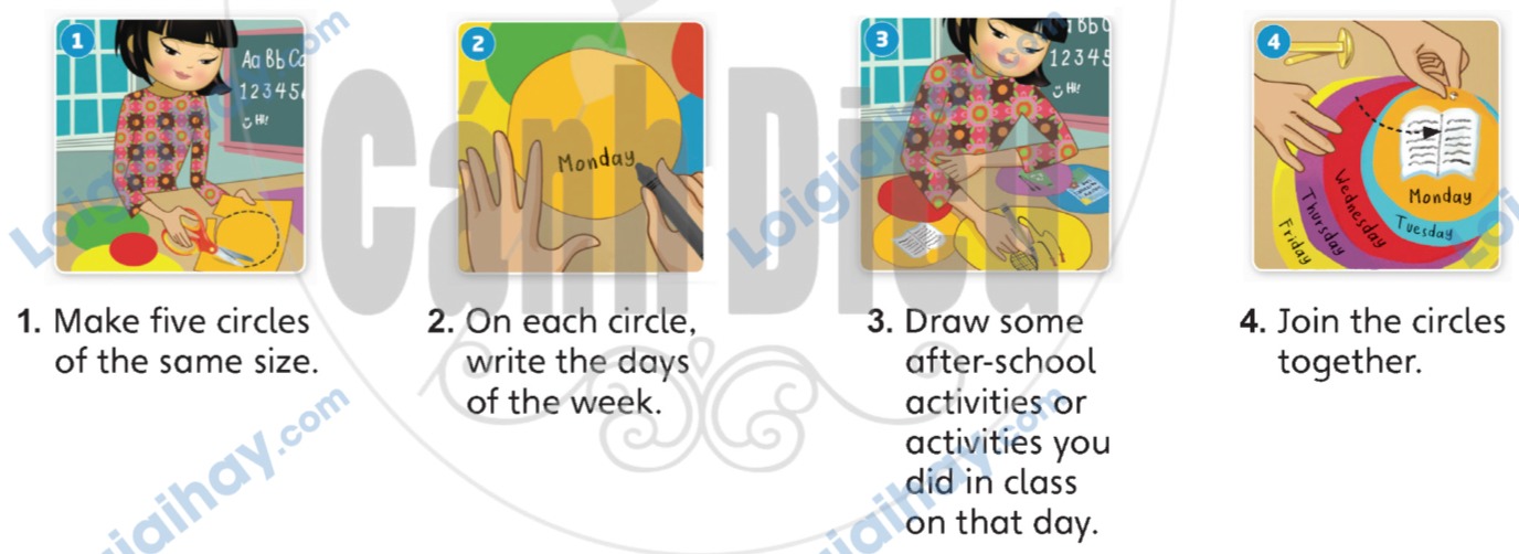 (Hãy vẽ những việc bạn đã làm ở trường tuần trước.)