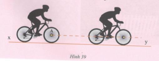Một vận động viên xe đạp chạy xe trên một quảng đường phẳng (h.39). Hỏi trục A của bánh xe trước di động trên đường nào ?