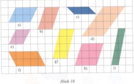 Cho biết mỗi cạnh ô vuông là 1 m. Tính và ghi diện tích của mỗi hình bình hành sau ngay bên hình.