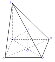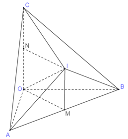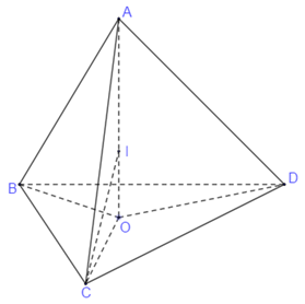 Đặt IA = IB = IC = ID = R, ta có: AO \bot \left( {BCD} \right) nên