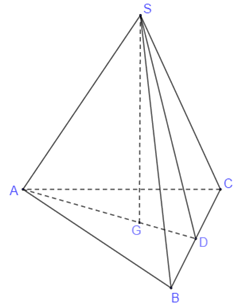 SH \bot \left( {ABC} \right) \Rightarrow SH \bot HG \Rightarrow SG = \sqrt {S{H^2} + H{G^2}} = \sqrt {{{\left( {\frac{1}{2}a} \right)}^2} + {{\left( {\frac{{\sqrt 3 }}{6}a} \right)}^2}} = \frac{{\sqrt 3 }}{3}a