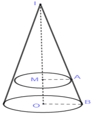 Mặt phẳng \left( P \right) chia hình nón thành 2 phần trong đó có 1 phần là hình nón có đỉnh là I, đáy là đường tròn tâm M.
