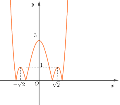 Câu 11: Tìm tất cả các giá trị của m để phương trình |x4−4x2+3|=m có đúng 8 nghiệm phân biệt?