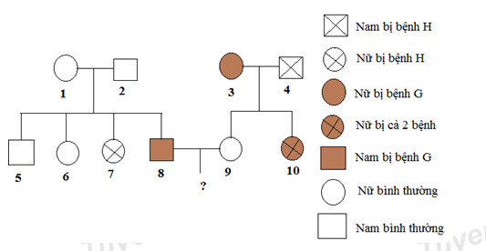 IV. Cặp vợ chồng số 8-9 sinh con bị bệnh H với xác suất cao hơn sinh con bị bệnh G