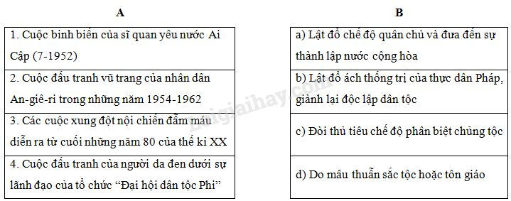 Nối nội dung ở cột A với nội dung ở cột B cho phù hợp