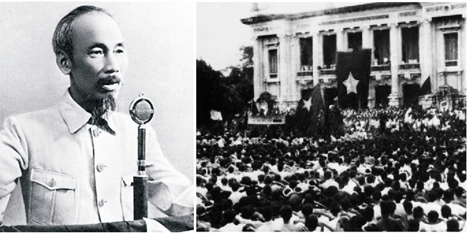 - Ngày 2/9/1945, tại Quảng trường Ba Đình, Chủ tịch Hồ Chí Minh thay mặt Chính phủ lâm thời đọc “Tuyên ngôn độc lập”, trịnh trọng tuyên bố với toàn thể quốc dân và cả thế giới: Nước Việt Nam Dân chủ Cộng hoà thành lập.