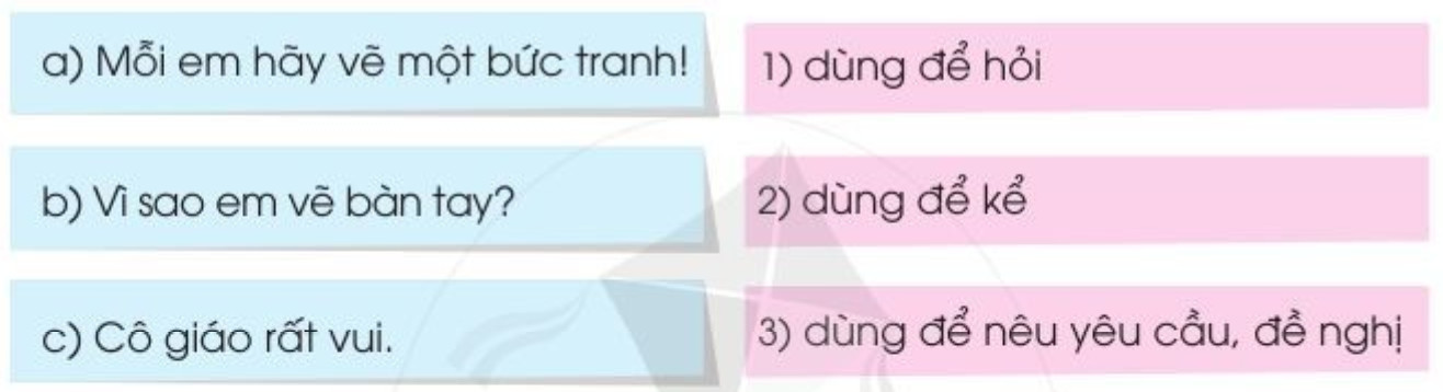 Câu 2: Mỗi câu sau có tác dụng gì? Ghép đúng: