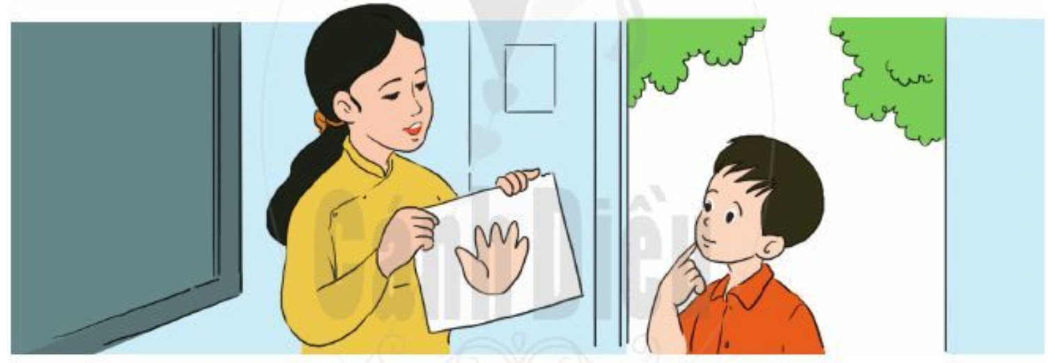- Vì sao em vẽ bàn tay? Bàn tay đó của ai? - Cô giáo đến bên Hải và hỏi nhỏ cậu bé.