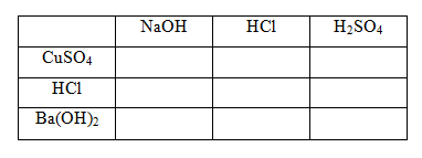 a) Cho các dung dịch sau đây lần lượt phản ứng với nhau từng đôi một, hãy ghi dấu (x) nếu có phản ứng xảy ra, số 0 nếu không có phản ứng.