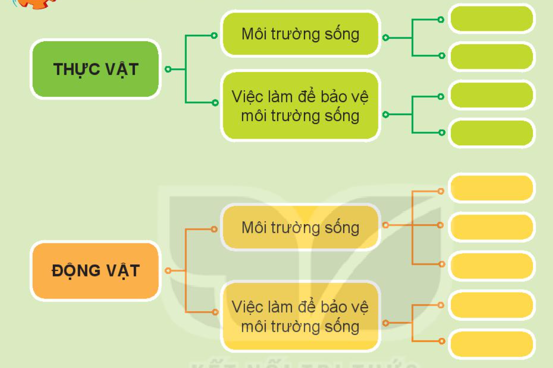 1. Hoàn thành sơ đồ theo gợi ý sau: 2. Vẽ tranh về một việc làm giúp bảo vệ môi trường sống của thực vật và động vật.